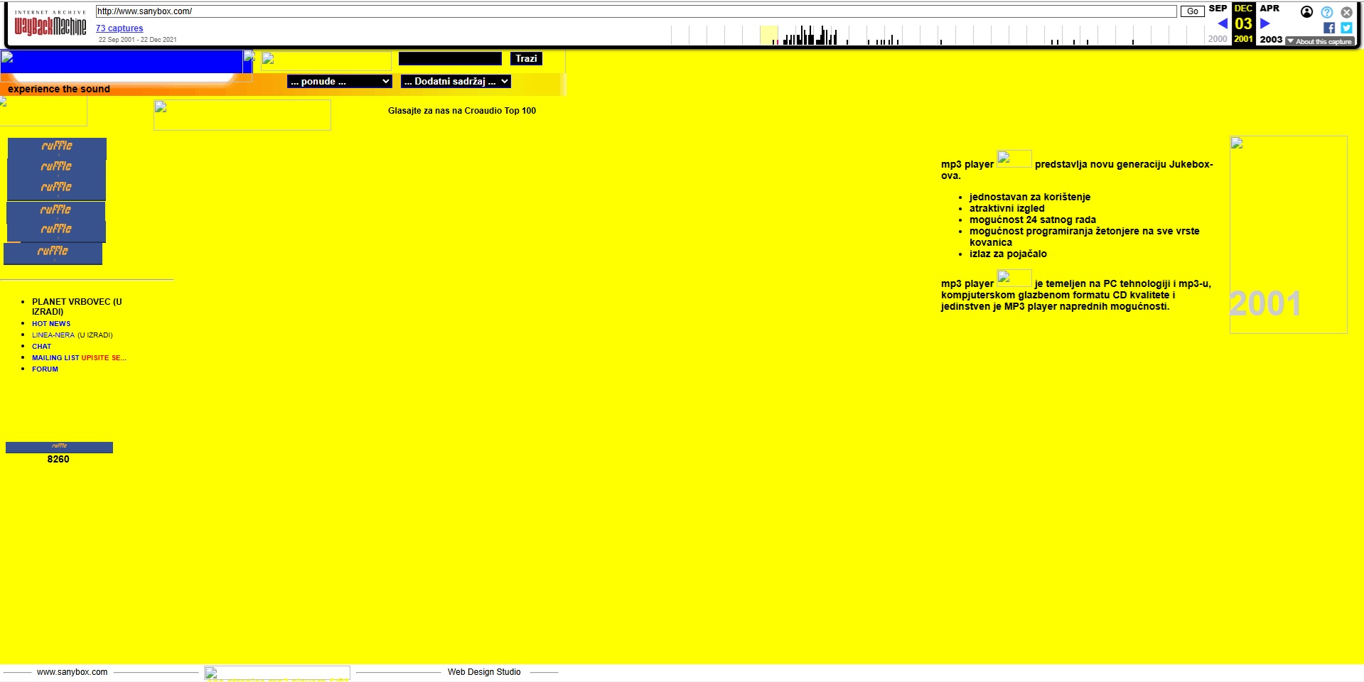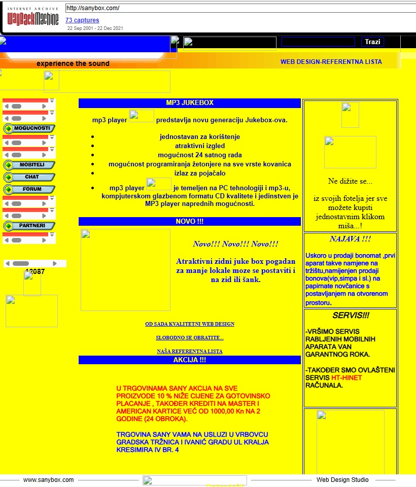 “Volio sam vidjeti što više kovanica od 5 kuna u kasi, bilo mi je lakše brojati,” kaže Nenad. “Zato sam napravio sustav koji za 5 kuna daje 3 pjesme.” Taj je princip postao industrijski standard koji su svi kasniji klonovi preuzeli. Nevjerojatno, ali istinito, pokoji oštečeni fragmenti snapshota naših ranih stranica za prodaju jukeboxa uhvatio je i sam Wayback Machine, kao digitalni fosil tih pionirskih dana.